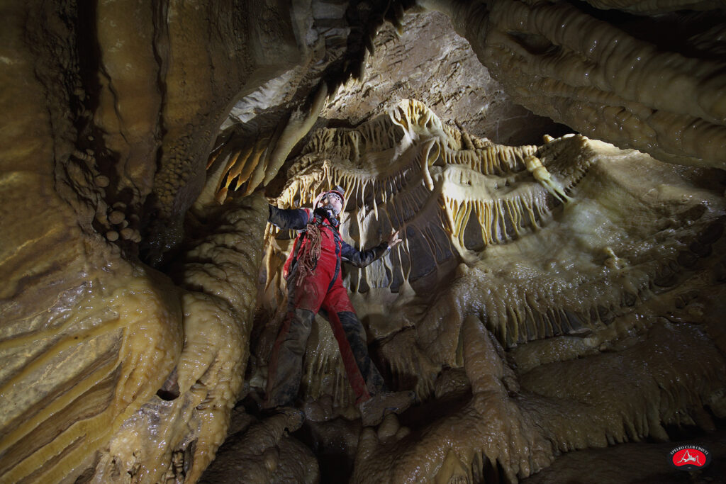 Onderweg kom je in diepe putten, nauwe gangen, bij kraakheldere ondergrondse rivieren en in enorme zalen.